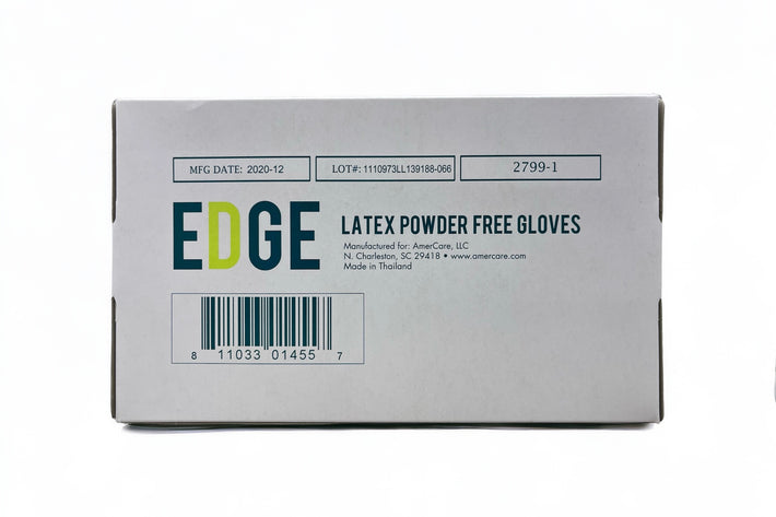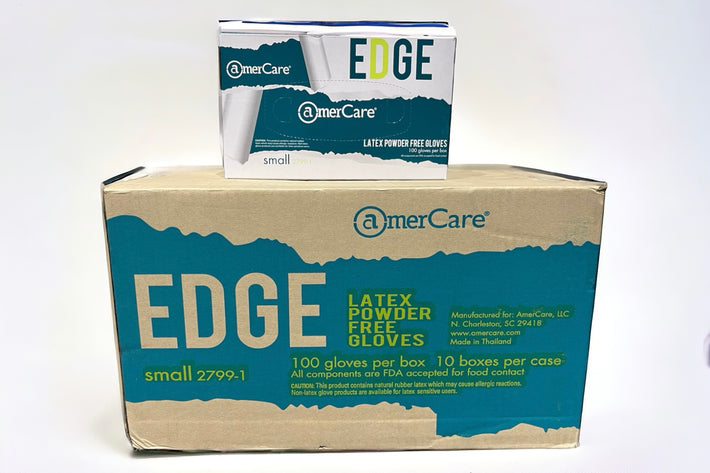 AmerCare EDGE Latex gloves feature an exam grade, powder-free design. These gloves are non-sterile, ambidextrous designed with low protein and allergens and are suitable for sensitive skin. Not suitable for people with latex allergies. The glove displays textured construction offers a confident grip when handling medical equipment and instruments. Available in size small with average glove thickness of 4.0mil.