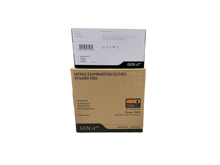 Gen-X Nitrile Powder-Free Exam Gloves are manufactured in Malaysia for SC HEALTH SPV, LLC located in Lexington, SC.