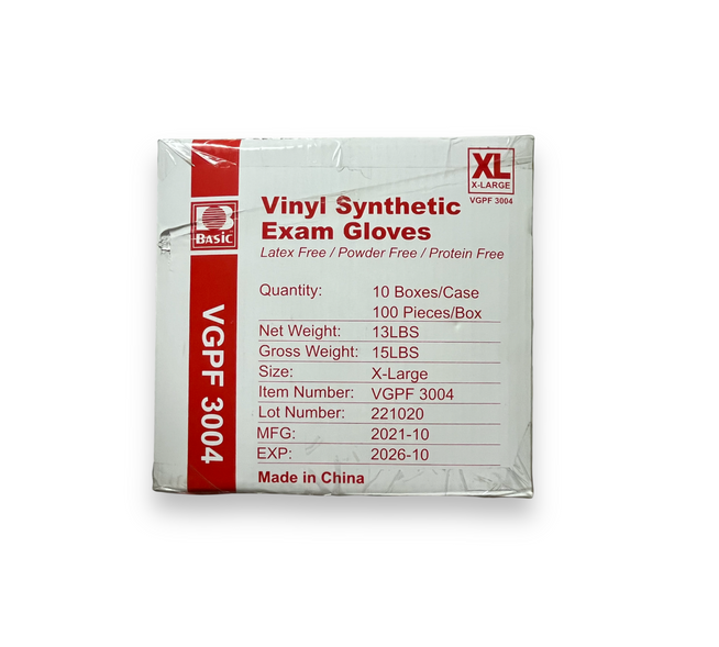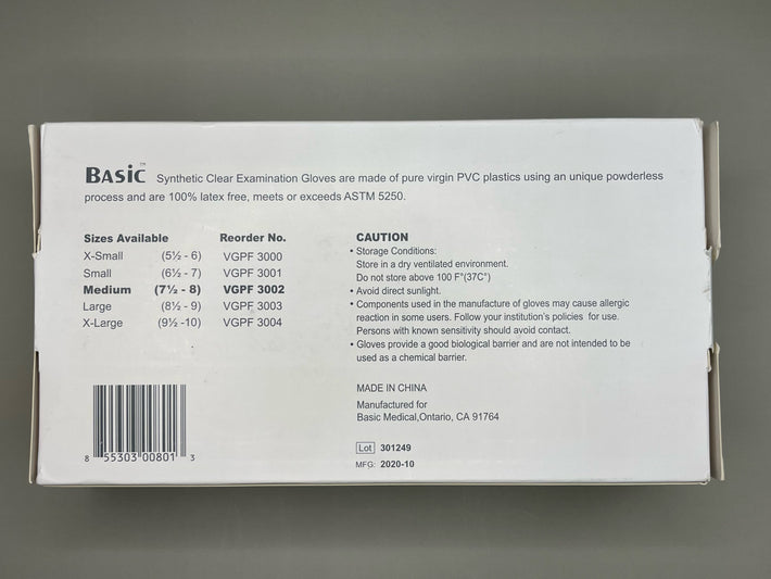 Basic Medical (Intco) Vinyl Synmax Gloves are manufactured in China with a distribution company called Basic Medical, Ontario, California, USA.