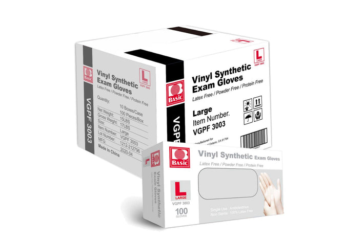 BASIC Clear Vinyl Synthetic Powder-Free Exam Gloves are powder-free making them a safe option for those with common glove allergies (latex-free) and sensitivities. With a smooth finish, these gloves provide excellent tactile sensitivity, allowing for greater dexterity and precision. The finger thickness is 0.09mm and palm thickness is 0.07mm. The clear color ensures visibility of any contaminants, and they are designed to be disposable for easy and convenient use.