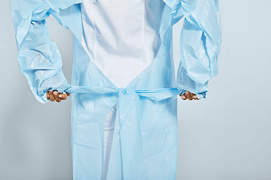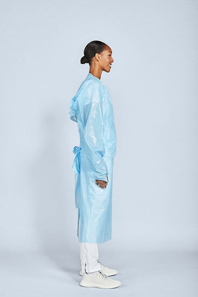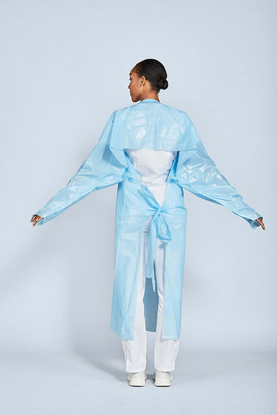 Isolation Gown: (Longkare) AAMI Level 2 CPE (25g) Disposable, Non-Surgical, Thumb hole sleeve, Blue, GB15979-2002 standard Share on WhatsApp