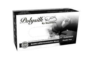 Polysilk Black Latex Powder-Free Exam Gloves, (Shamrock), 3.9 - 4.3 mil, (510k, FDA 21CFR 177-199 for food contact) -