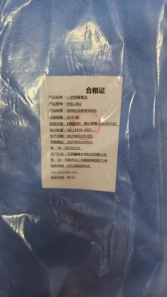 AAMI Level 2 SMMS blue gown are manufactured by Jiangsu Yingfeng Optical Technologies Co. Ltd. located in China.