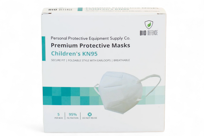 The mask features a flat-fold design with an adjustable nose piece and ear loops, ensuring a secure and comfortable fit for children. The color of the mask is white and is available in a Child Premium KN95 size. Keep your children safe and protected with the Bio Defense Premium Children’s KN95 mask from PPE Supply Co.